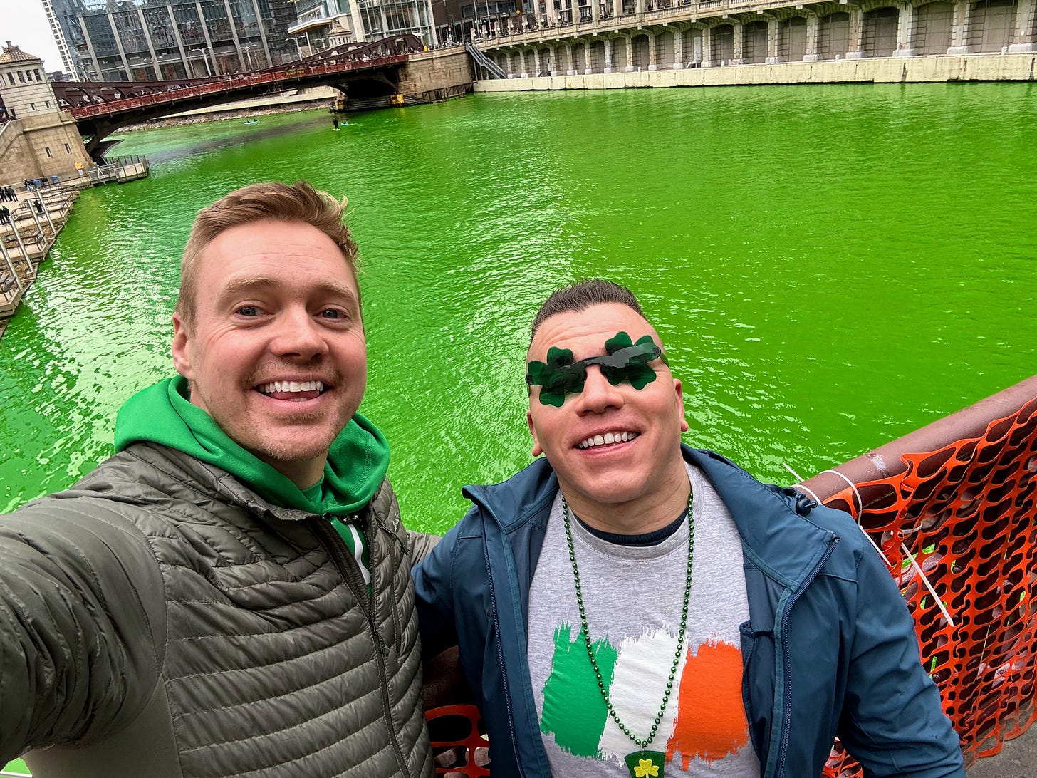 This past weekend we celebrated St. Patrick’s Day in Chicago. If you’ve never been, it’s a huge, chaotic mess—and so much fun. Emilio and I went down to the river for a quick look to see it green, then headed north to meet some friends.